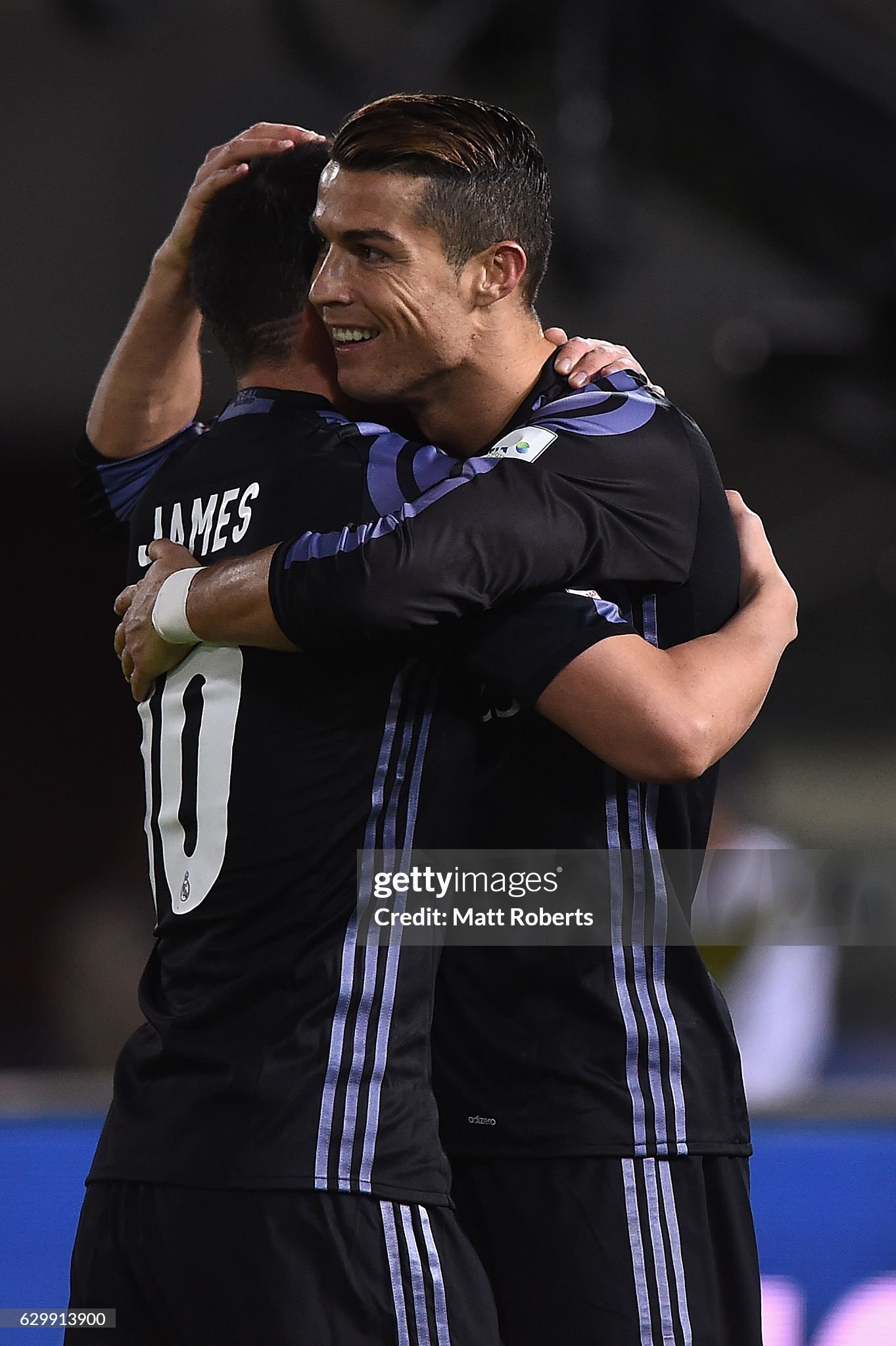 The new Real Madrid 2016-17 third shirt is mostly black, with white club and sponsor logos and dark pale purple Adidas stripes running down on both sides. The sleeve cuffs and v-collar of the Real Madrid 2016-2017 third shirt are black.